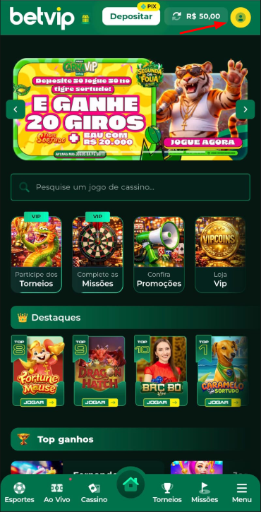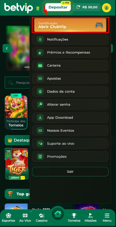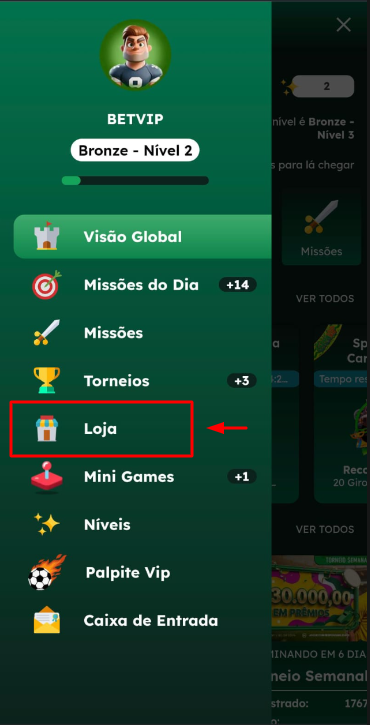 Acesse a área de gamificação Clube VIP na plataforma.