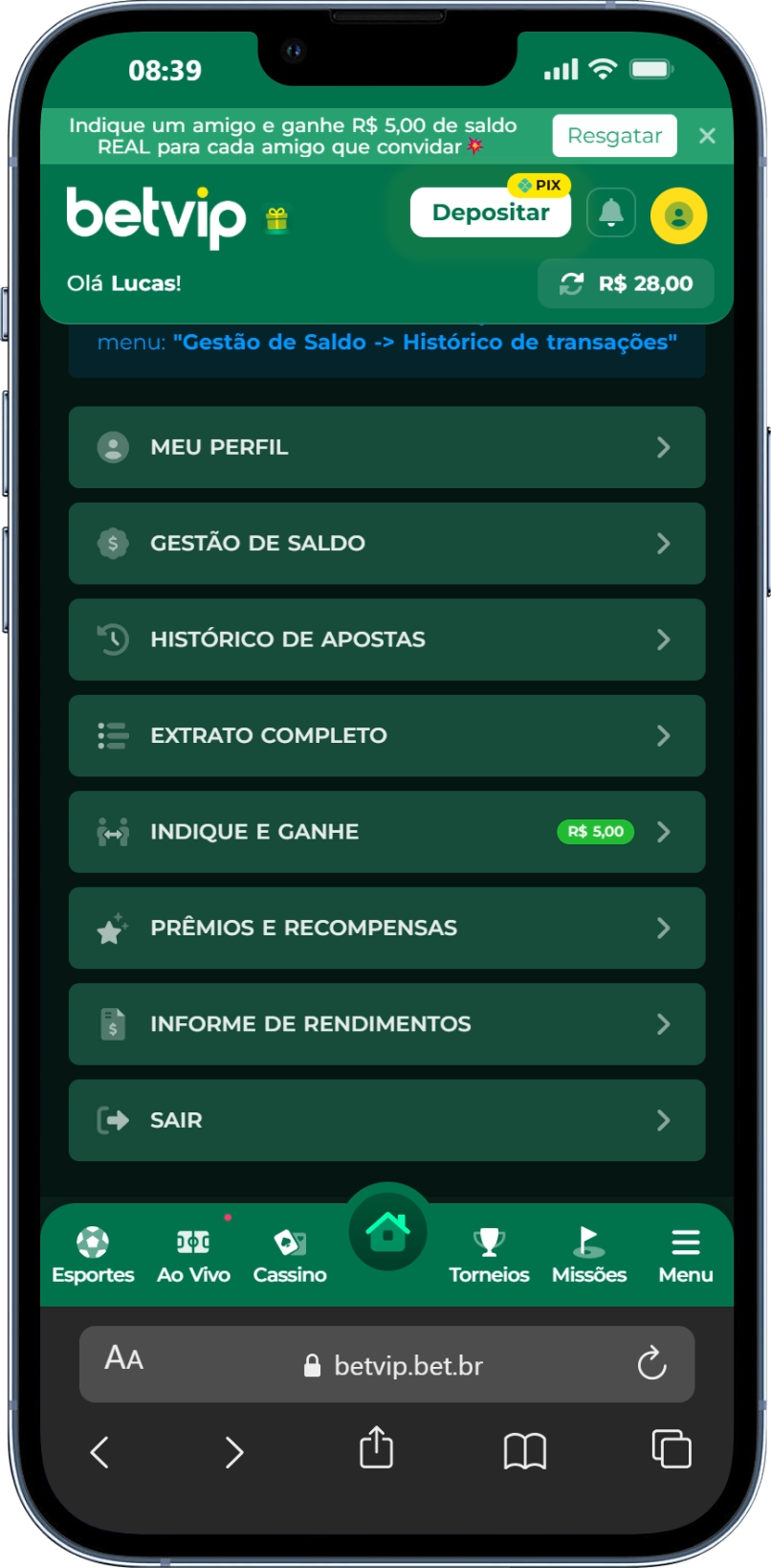 Faça Login na sua conta Betvip;